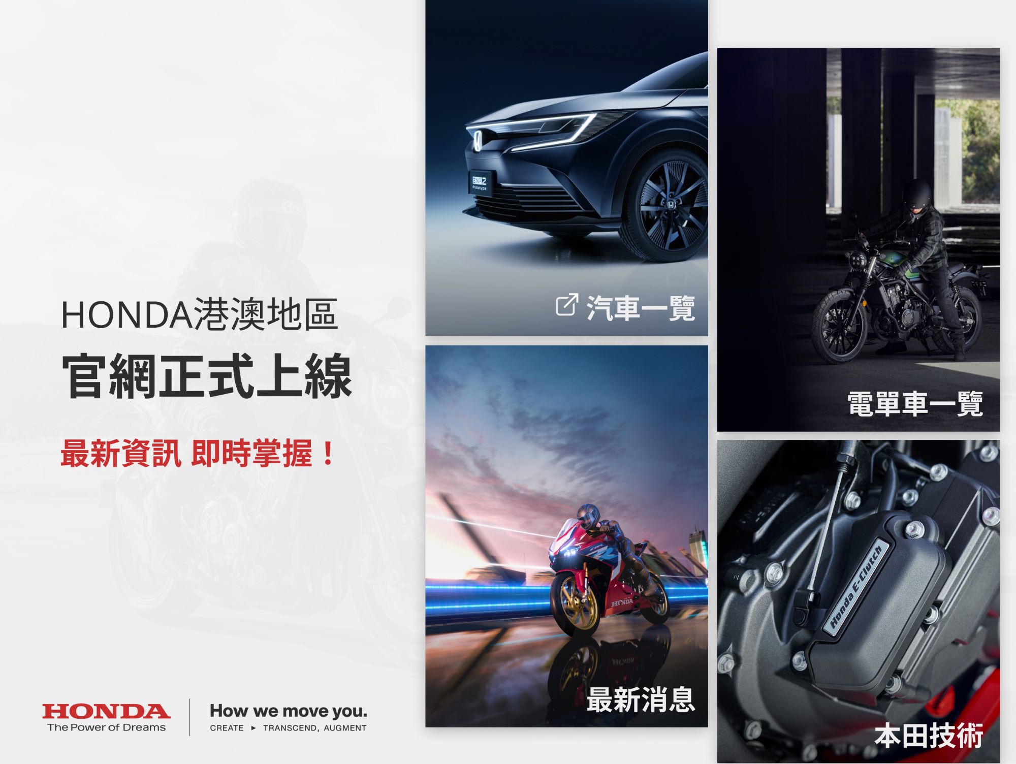 感謝各位顧客長久以來對Honda的支持。Honda一直致力實踐其「三個喜悅」的企業理念,為顧客提供高品質的產品以及優質的銷售體驗。為進一步強化Honda與客戶間之聯繫,以及配合Honda於港澳市場的業務發展,我們很高興宣佈本田技研工業(中國)將推出面向香港及澳門市場的官方網站,並將在日後為客戶提供下列資訊: