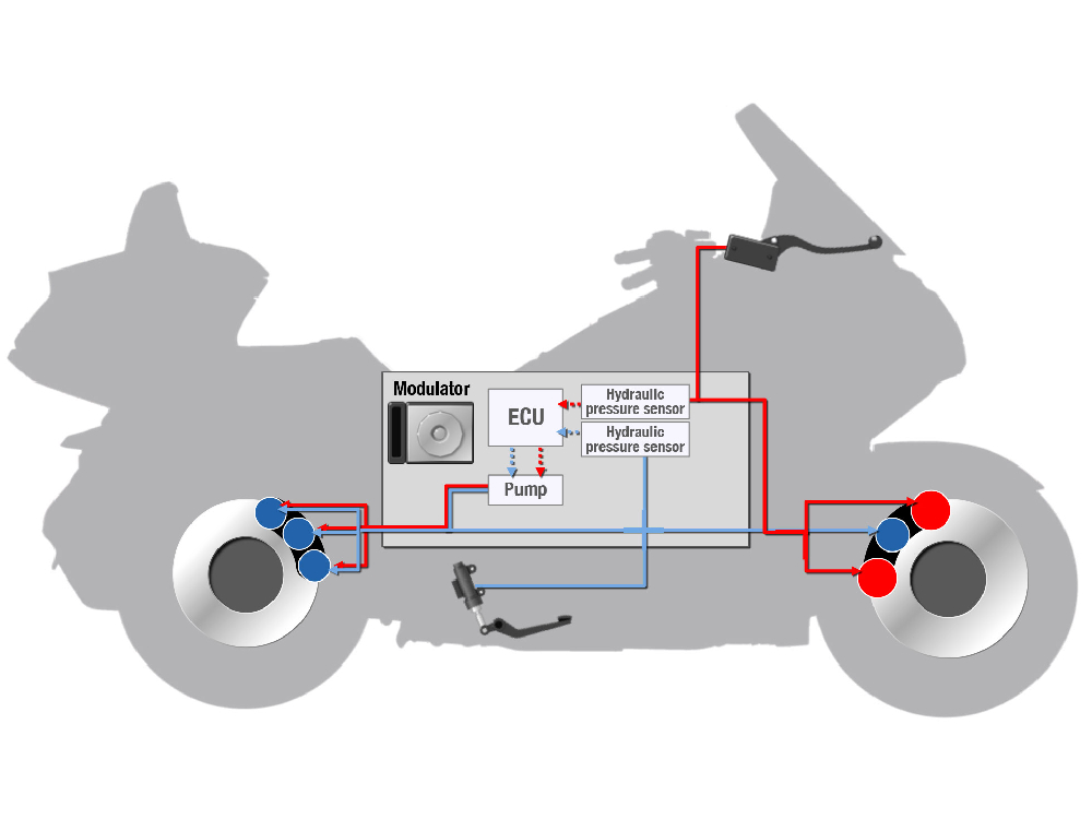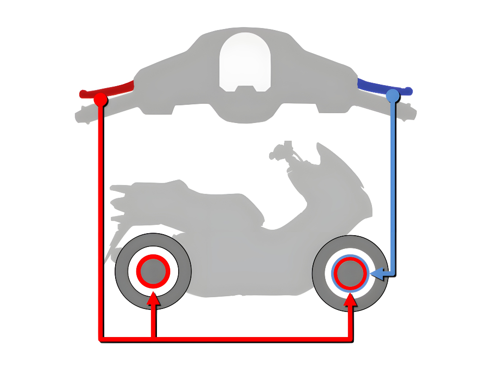 當使用左側拉桿操作後煞車時,前剎車亦會同時啟動。此系統主要安裝於小型電單車與綿羊車型上,旨在協助從初學者到經驗豐富的騎士於城市道路騎行時,能夠以簡單操作獲得高效的煞車控制。