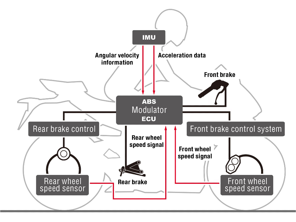 在急速剎車時,車輛負荷會轉移到前輪,令後輪脱離路面,降低車輛穩定性。超跑型 ABS 通過傳感器(IMU)監測車身動態,當偵測到後輪軚脱離路面時,系統會自動調整煞車油壓,以確保後輪與路面保持接觸,協助騎士安心地進行緊急煞車。