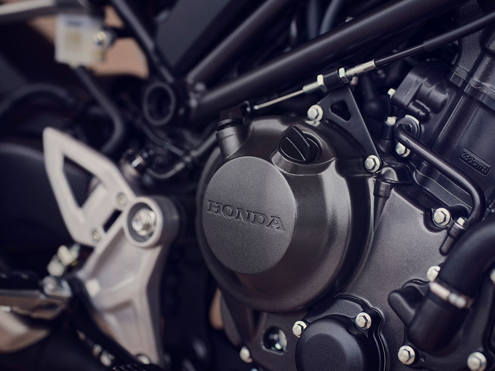 CB300R 的緊湊型286cc DOHC 四氣門液冷單缸引擎是一顆小巧的寶石,因其順暢的運轉和響應性而贏得了眾多粉絲。隨著轉速上升,它可以帶來速度的快感,激發腎上腺素。更配備輔助滑動式離合器(Assist & Slipper Clutch),減少離合器桿的操作負擔,和退檔時因引擎突然煞車而引起的不快震動感,讓您輕鬆駕馭城市中各種日常生活的路況。
