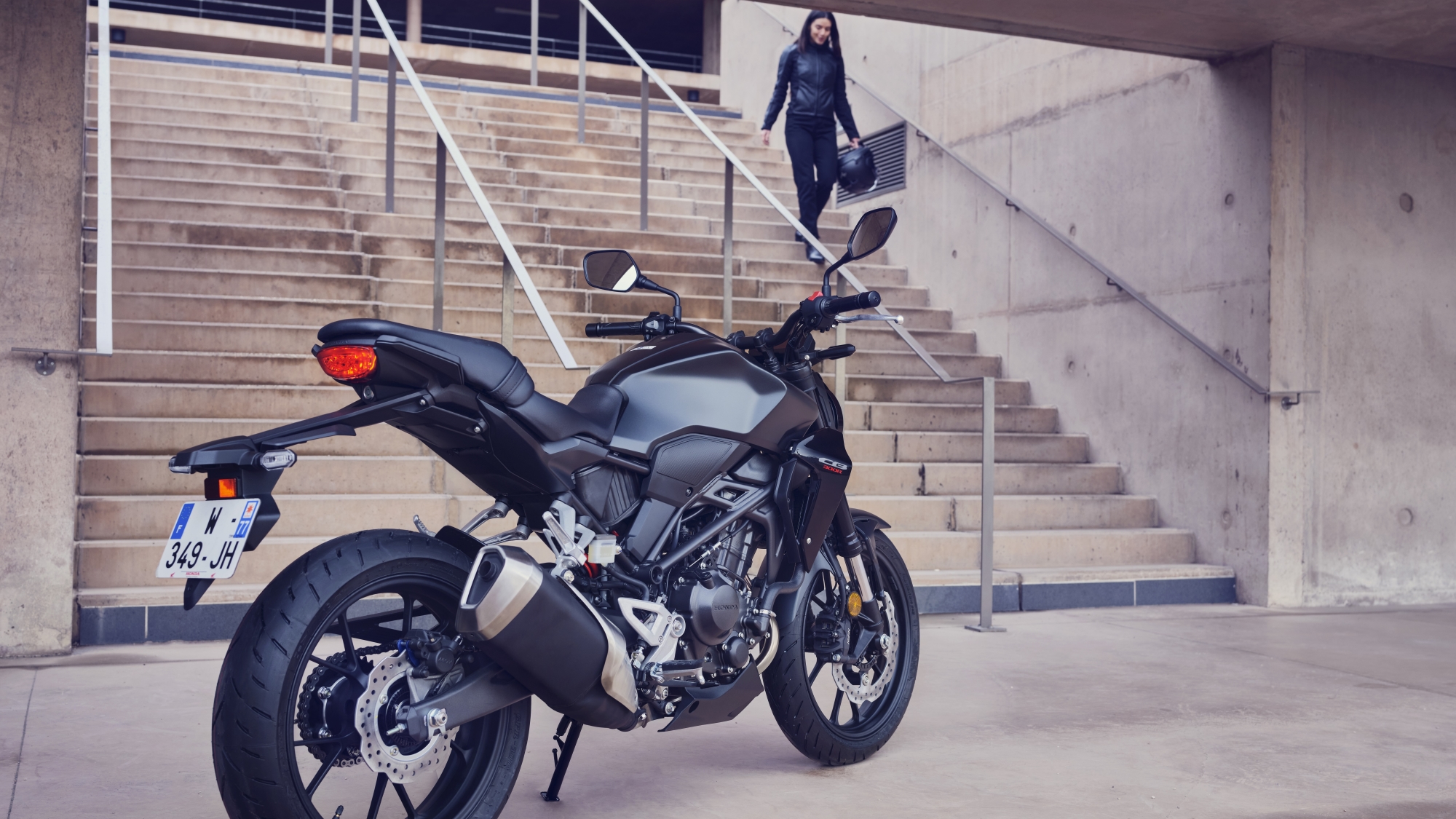 鑽石形鋼製車架可確保敏捷的轉向。它在CB300R簡約外觀中也發揮了重要作用。強大的抓地力來自110/70R-17和150/60R-17徑向前後輪胎。以及強大的制動力;四活塞制動卡鉗咬合296mm浮動盤。排氣管的側罩顯示了代表CB系列成員的CB標誌,彰顯其與別不同的地位。