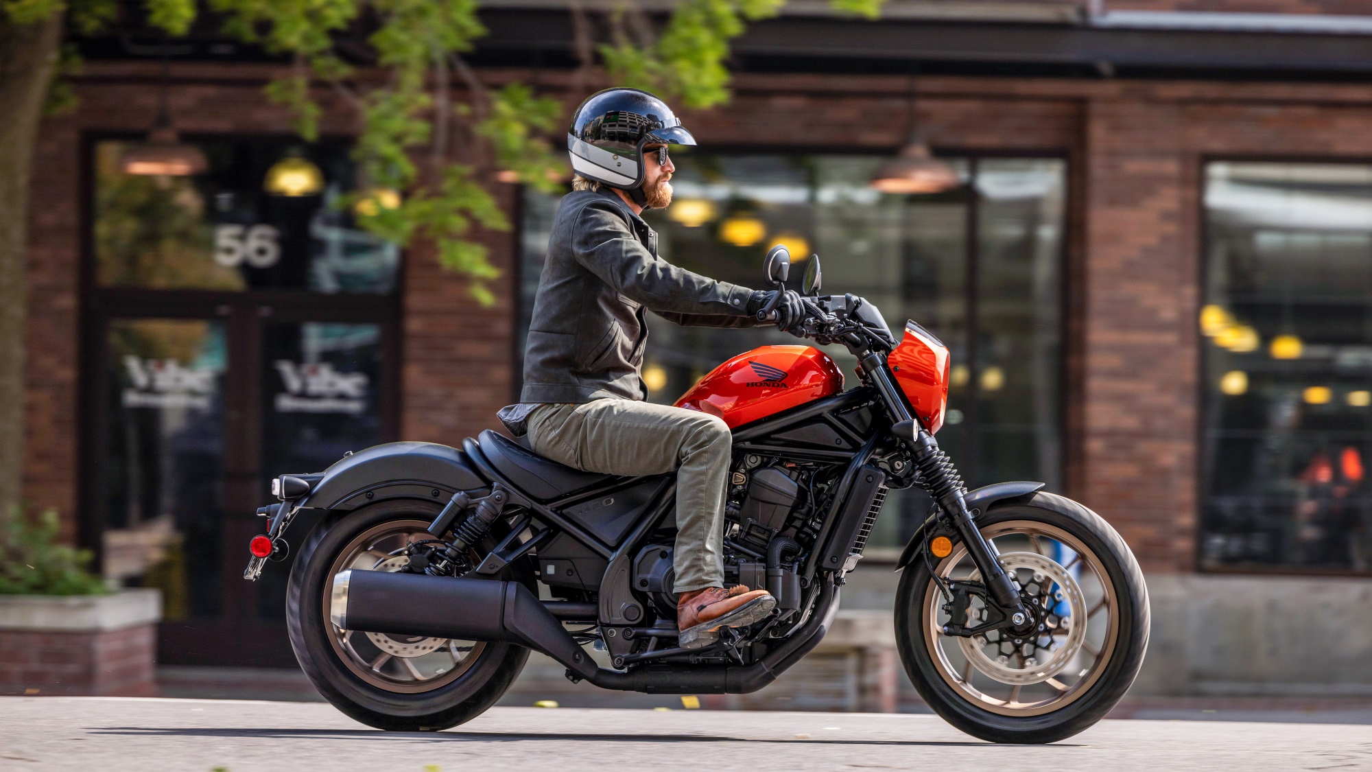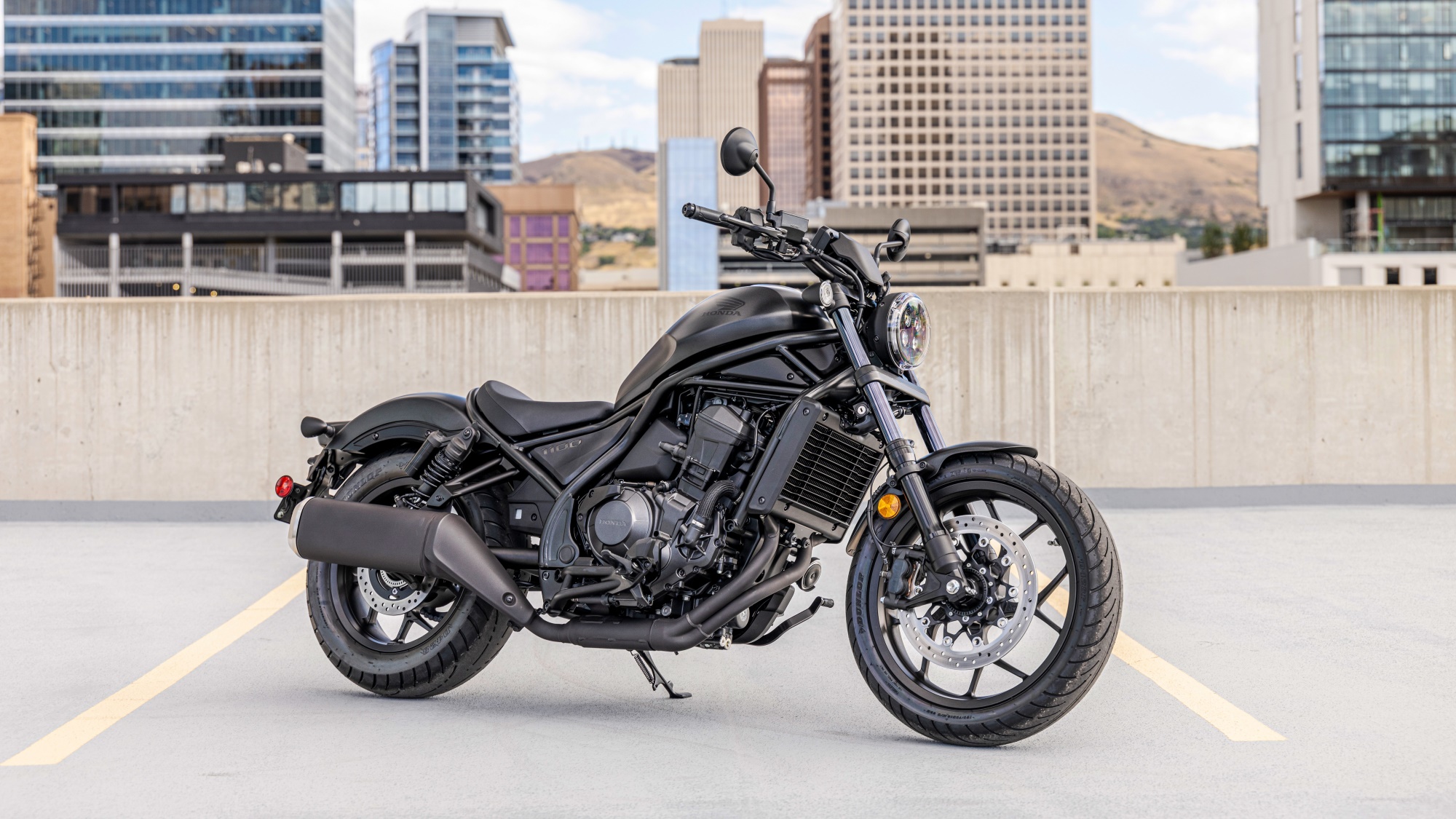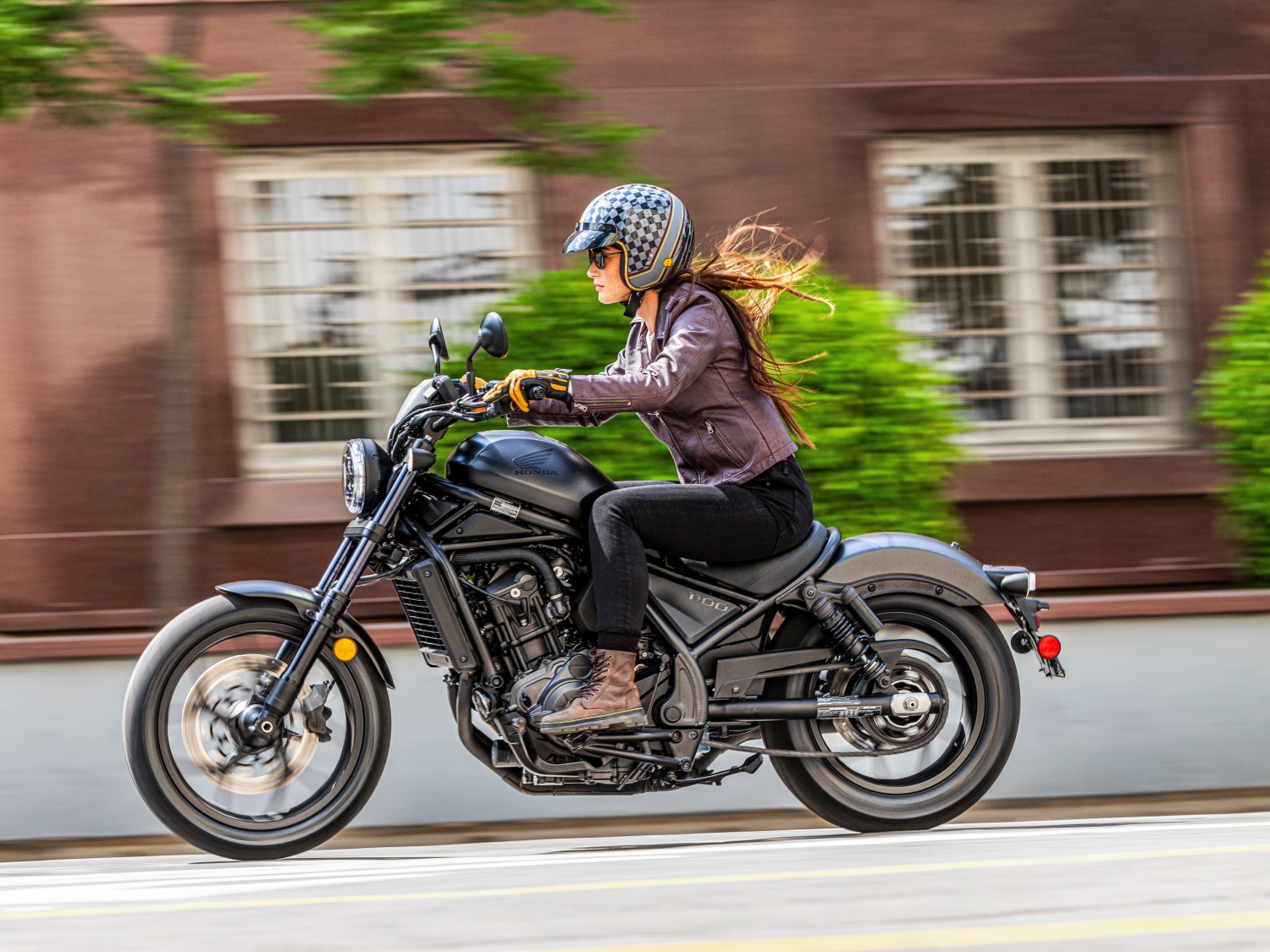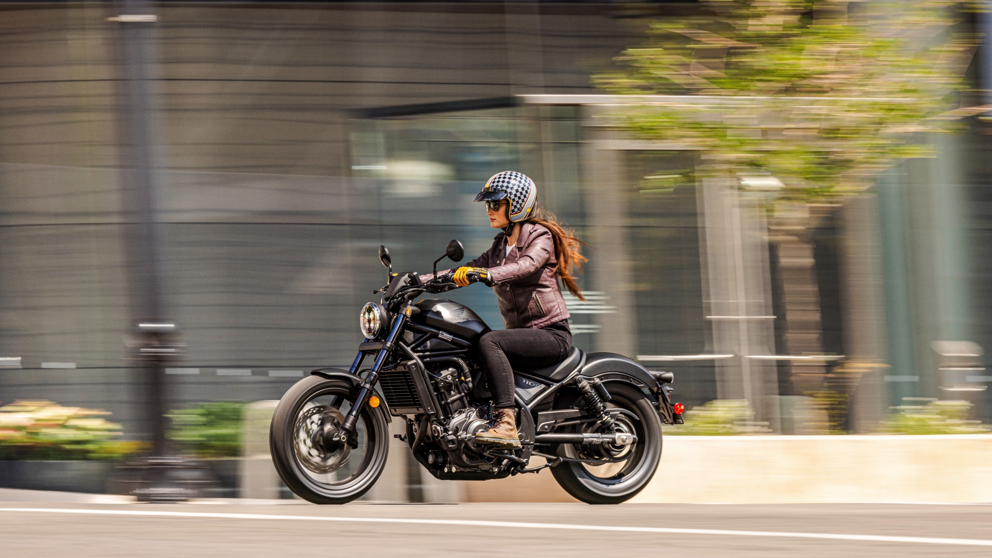 前煞車採用徑向安裝四活塞卡鉗,搭配直徑330mm的浮動剎車碟;後輪則配備256mm剎車碟。兩者均搭載ABS防鎖死煞車系統,在不同場景下皆能提供強大而穩定的制動力。前輪尺寸為130/70-18,後輪則採用更寬的180/65-16,有助提升抓地力。前後輪圈均由鑄鋁製成,並採用Y型五幅設計,鋭利且具運動感,完美結合Rebel的卓越操縱性與獨特設計美學。