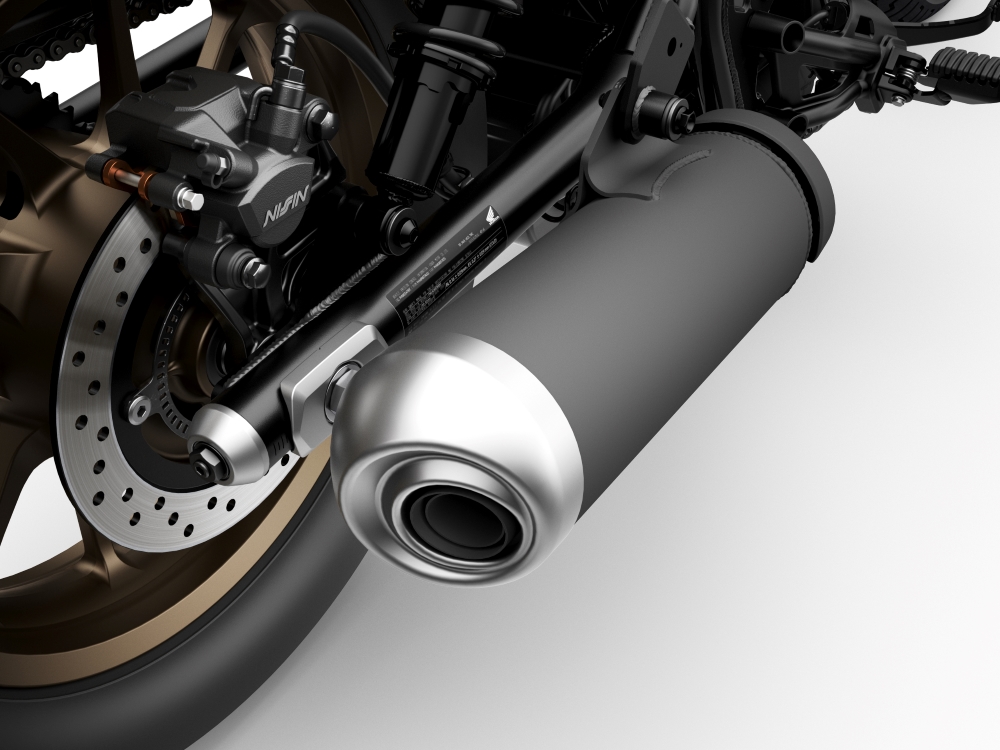 引擎運作時,即使在怠速時也能營造出酷炫的聲音。另外,簡單的黑漆消音器發出的排氣聲浪聽起來有Rebel獨有的韻味。消音器內部結構設計經最佳化,讓節氣門打開時發出的聲音更加愉悅。